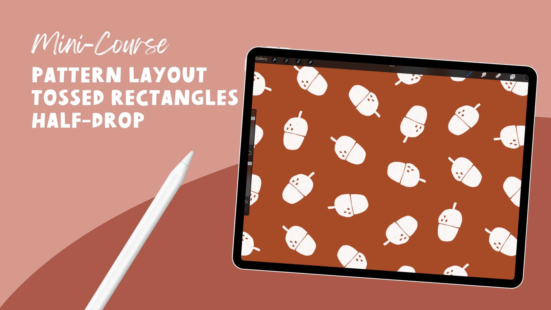 In this mini-course you'll learn how to create a cute tossed rectangular half-drop pattern using a pre-made layout in Procreate.