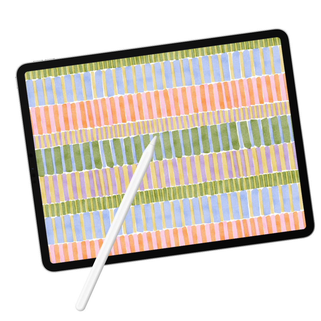 With these Procreate brushes you can create all sorts of patterns and illustrations in Procreate. In the Hand-Drawn Stripes class we are creating this cute seamless repeat pattern.