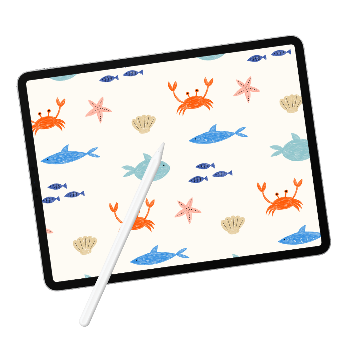 With these Procreate brushes you can create all sorts of patterns and illustrations in Procreate. In the Sea Life class we are creating this cute seamless repeat pattern.