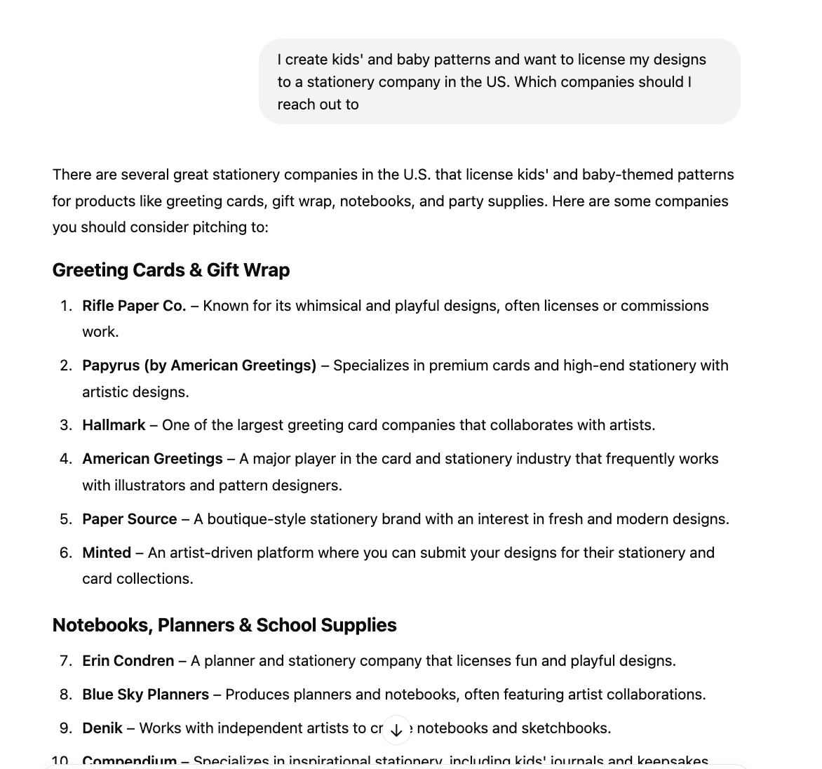 Regular ChatGPT provides generic answers that require a lot of refining to be useful for surface designers. These GPTs are pre-trained with creative industry knowledge—so you get more relevant, actionable insights right away, saving you time and effort.